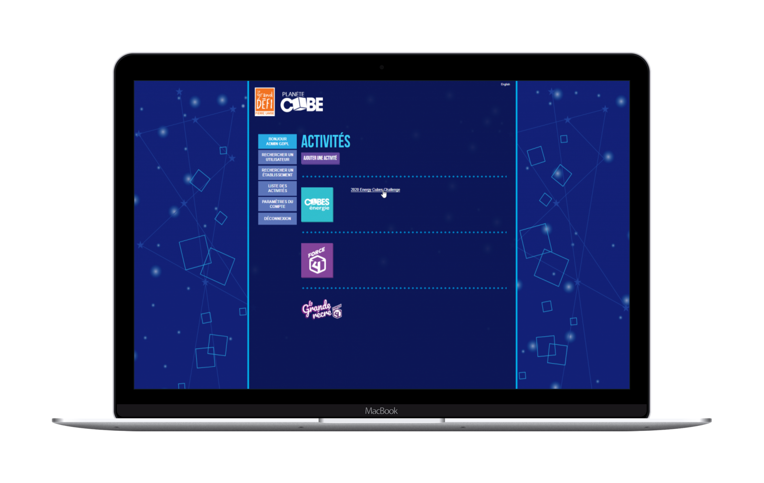 Après avoir développé le site web Planète Cube, pour le Grand défi Pierre Lavoie, la crise du COVID-19 (Coronavirus) a frappé le Québec. Comme les écoles ont fermé pendant quelques semaines, le Grand défi Pierre Lavoie nous a donné le mandat de faire une plateforme web de gestion d’événements, en moins de 5 jours, permettant aux jeunes de faire des Cubes énergie à leur domicile. Les parents pouvaient alors inscrire leurs enfants, dans le but de faire bouger toute la famille.